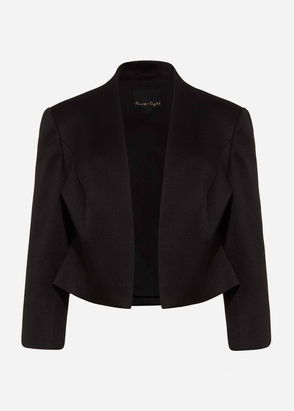 Add the finishing touch to occasion wear with this fitted open front jacket - we love the contemporary peplum hem at the back and the split cuff sleeves.