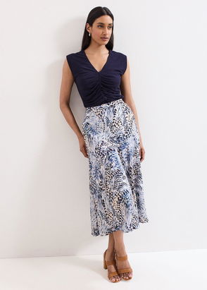 The perfect print to add to your wardrobe. Designed with a bold blue zebra print, our skirt features a tie detail at the waist and falls to a flowing, tiered skirt. We wear ours with black wedges for perfect summer style.