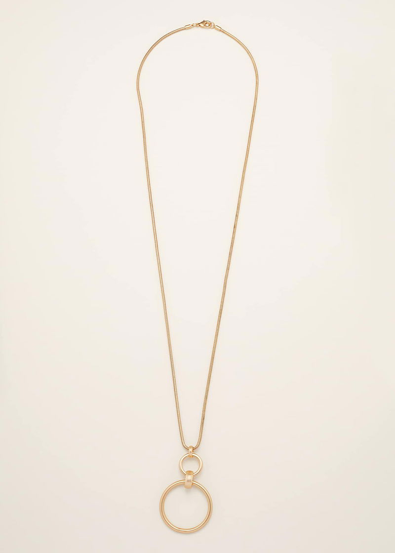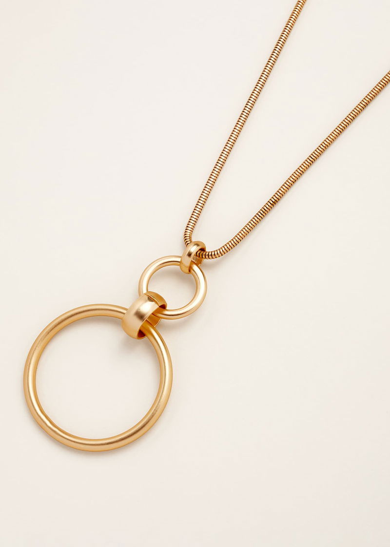 An effortlessly elegant accessory, our Vallie pendant features two interlocking hoops at the drop of a long chain.