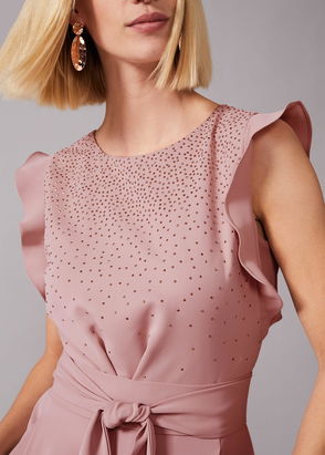 Featuring statement frilled sleeves and a flattering waist tie, this smart jumpsuit is a contemporary alternative to occasion dresses.