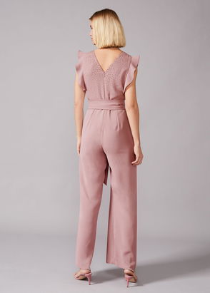 A statement jumpsuit for your next event. Designed in an abstract print, our Victoriana jumpsuit features a high round neckline, frill detailing at the arms, a waist belt to cinch and a feminine V-back. We wear ours with heels and earrings for an event-ready look.
