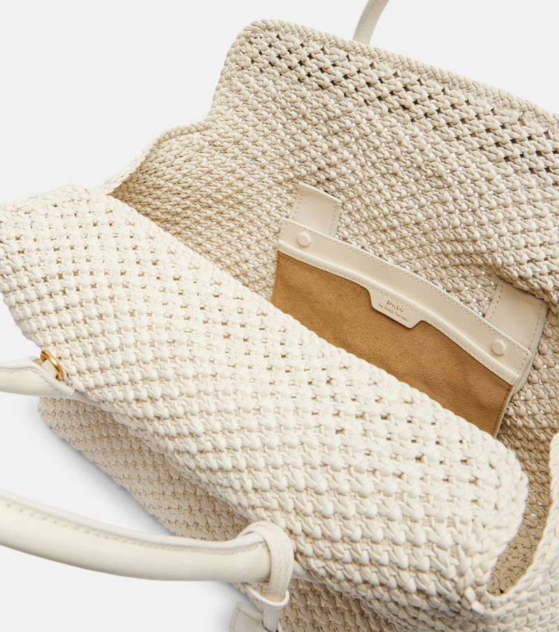 The Bellport tote bag from Polo Ralph Lauren boasts a charming woven leather construction. The versatile design is complete with a detachable strap, two tubular top handles, and a detachable charm.