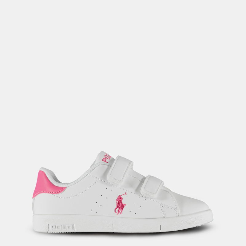 Style your little one right with the Bilton Touch Fastening Infants Trainers from Polo Ralph Lauren. These smart trainers come in a regular fit and feature air holes along each side for breathability with a padded collar and 2 touch and go fastening straps for a secure fit. The look is finished with a coloured heel and Polo Ralph Lauren detailing.
