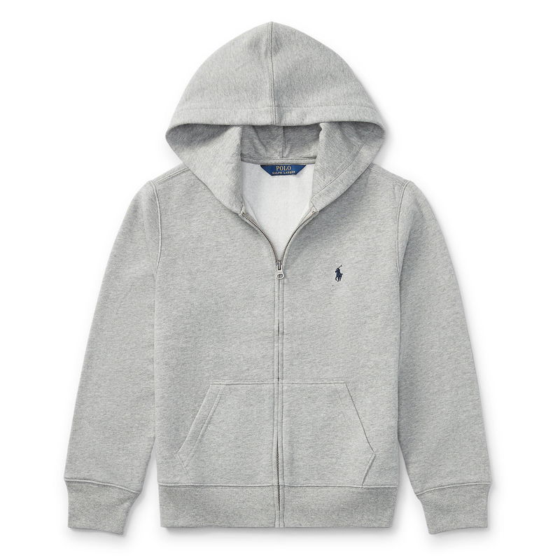 Timeless casual wear gets a premium update with this Polo Ralph Lauren Boys' Full-Zip Hoodie. Made from soft cotton jersey fabric, this everyday essential combines comfort with the signature style that has made the brand a wardrobe staple. The classic design features ribbed cuffs and hem for a secure fit, while the full-length zip closure allows for easy layering. A kangaroo pocket provides practical storage, and the iconic pony logo adds a subtle touch of authenticity.