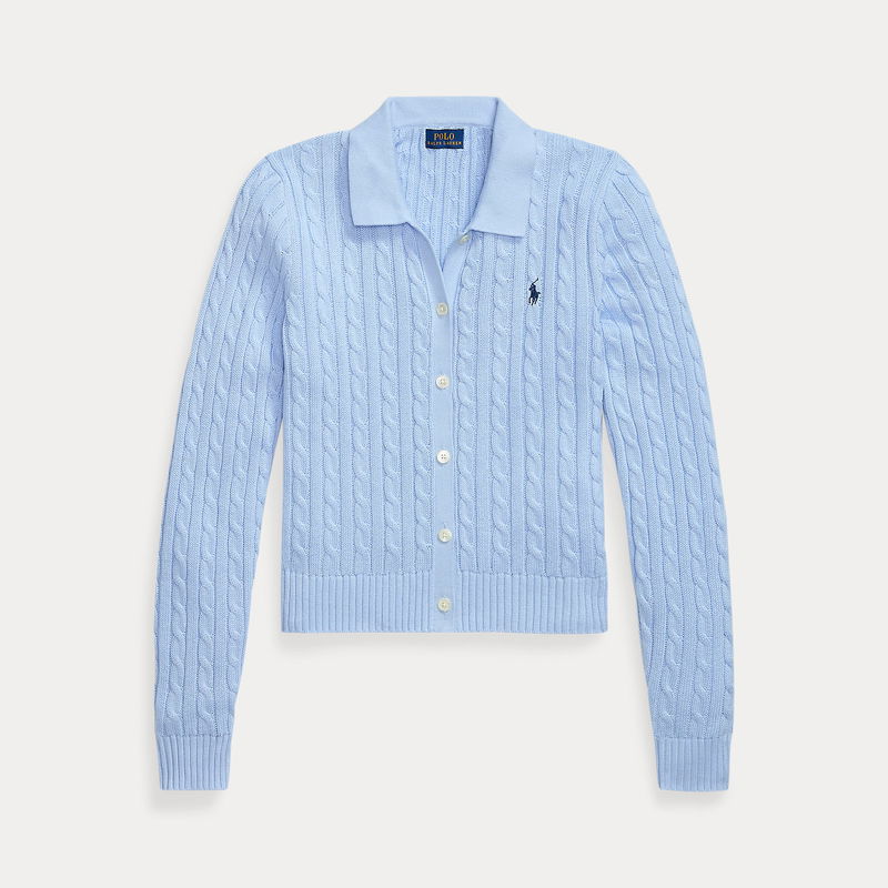 Description: Cable-knit from soft combed cotton, this buttoned cardigan is designed with a classic Polo collar and adorned with our signature embroidered Pony on the chest. Materials: Cotton Product Code: 100084010