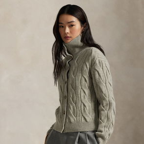 Cable-knit with a soft blend of Italian wool and carded cashmere, this buttoned crewneck cardigan is accented with our signature embroidered Pony at the chest.