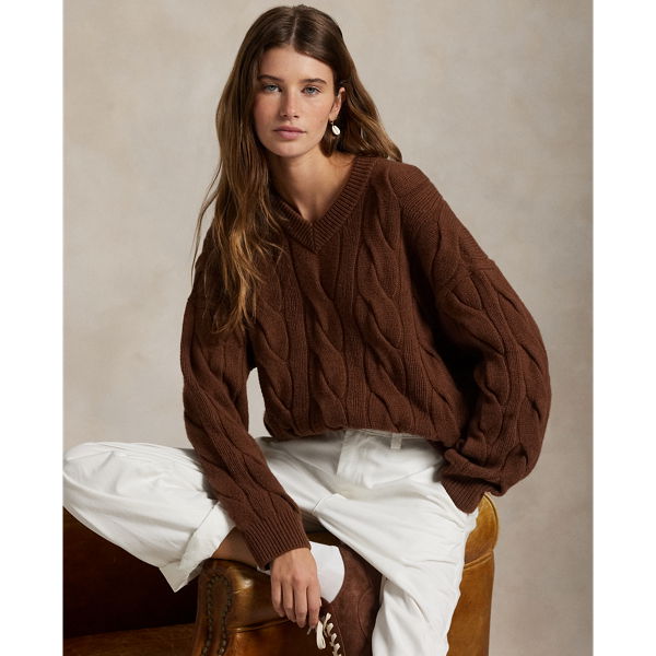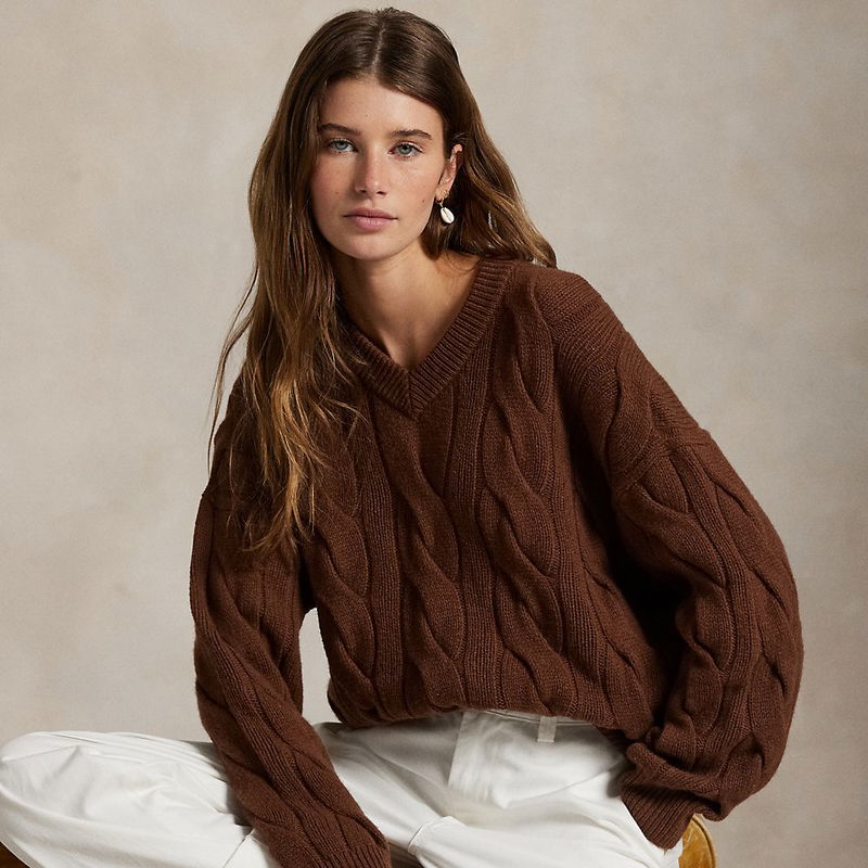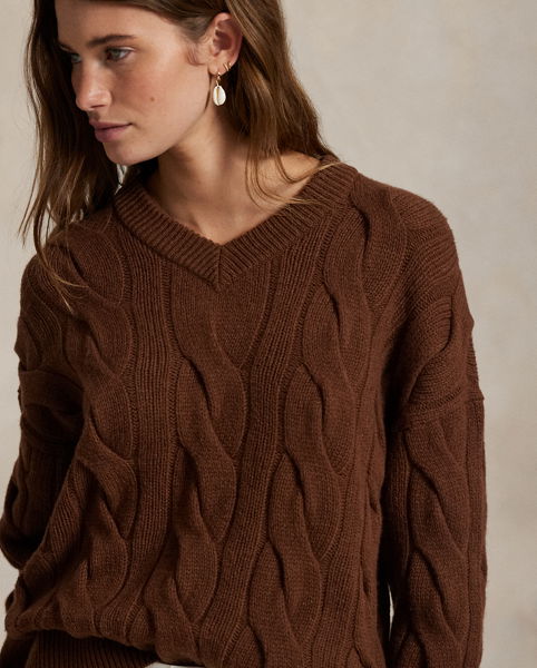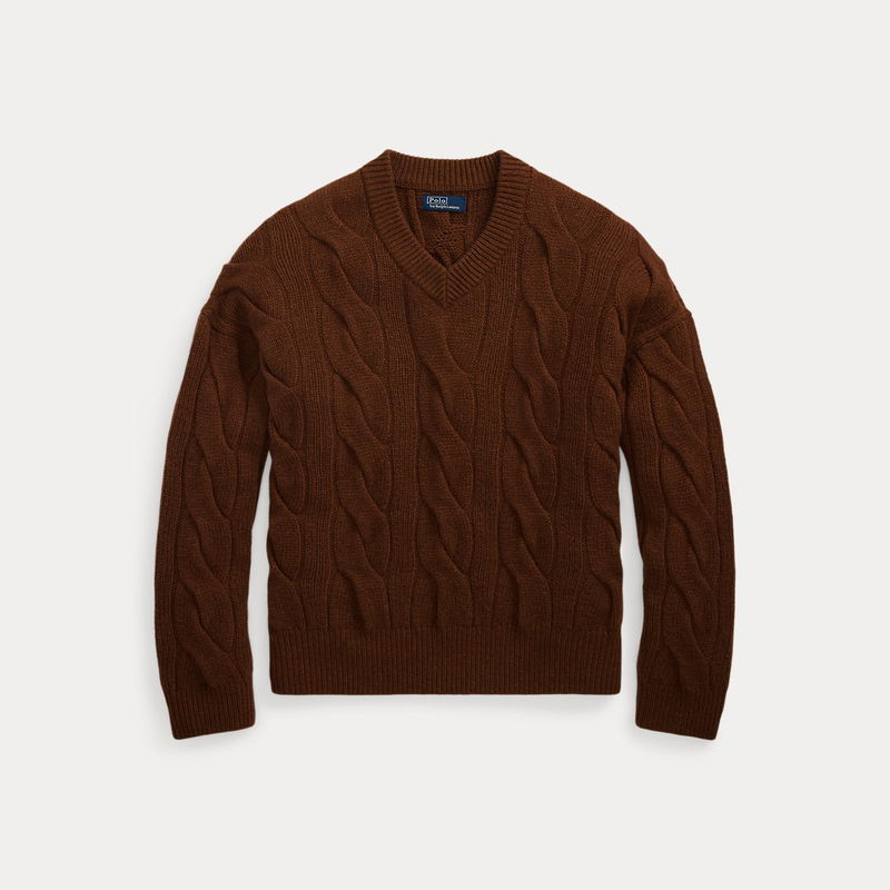 Cable-Knit Wool-Cashmere V-Neck Jumper