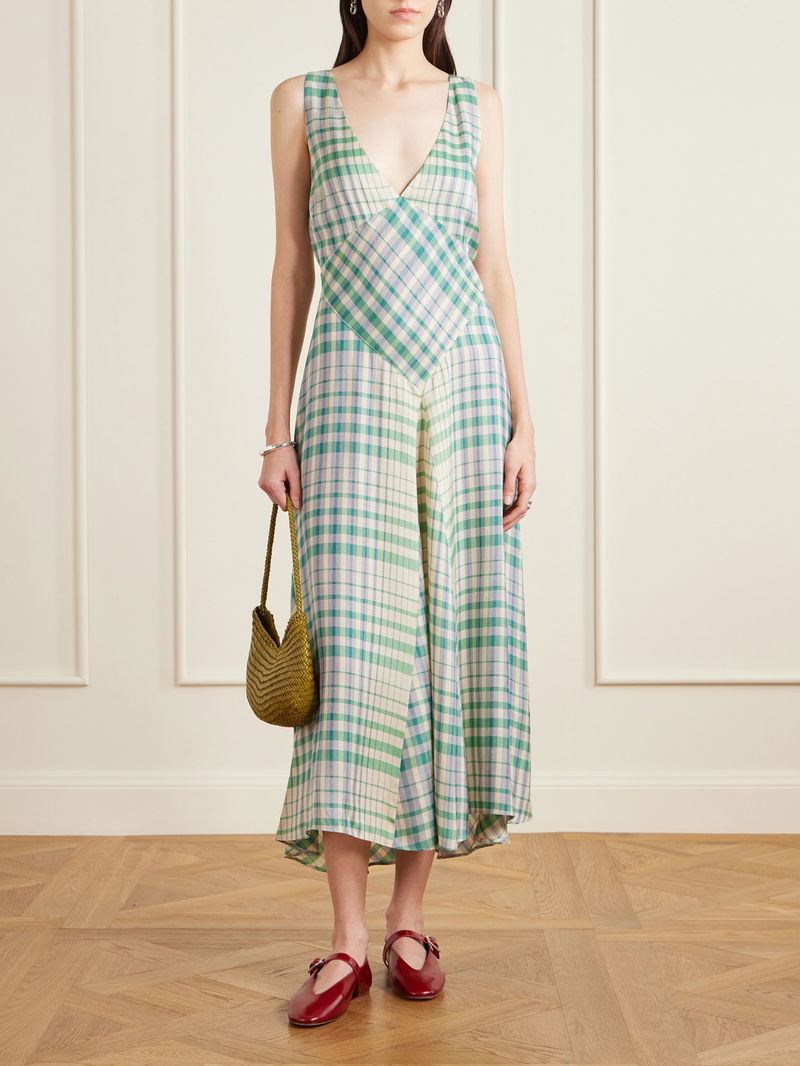 Checked Woven Midi Dress