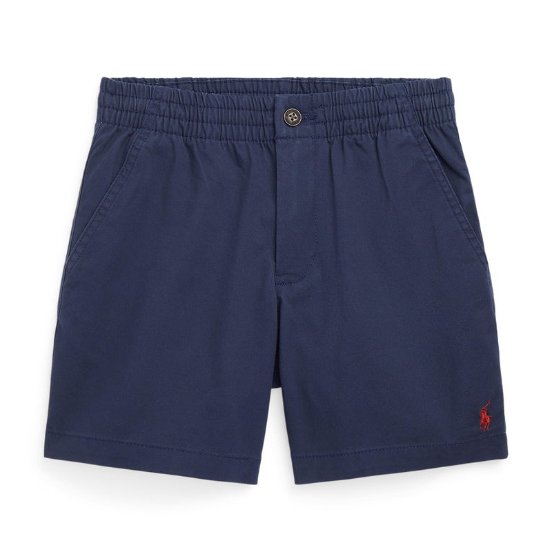 Elevate your little one's summer ensemble with these Chino Shorts by Polo Ralph Lauren. Expertly crafted from a soft and stretchy cotton blend to create a luxuriously lightweight appeal that keeps your little one comfortable with it's breathable feel. Featuring an elastic waistband with an interior drawstring, these shorts, cut to a relaxed fit, are secured with the zip fly with a buttoned closure adding a touch of sophistication. With two front-angled pockets and two back-buttoned pockets, your little one will have ample space to keep their essentials close at hand. Embodying the brand's iconic heritage, these shorts, designed in a classic colourway, feature the signature embroidered Pony on the left hem, symbolizing Polo Ralph Lauren's commitment to quality and craftsmanship. Perfect for both casual and semi-formal occasions, these Chino Shorts effortlessly transition from day to night. Whether paired with a crisp white shirt or a comfortable polo, they exude sophistication and timeless style.
