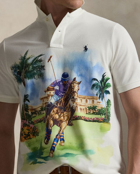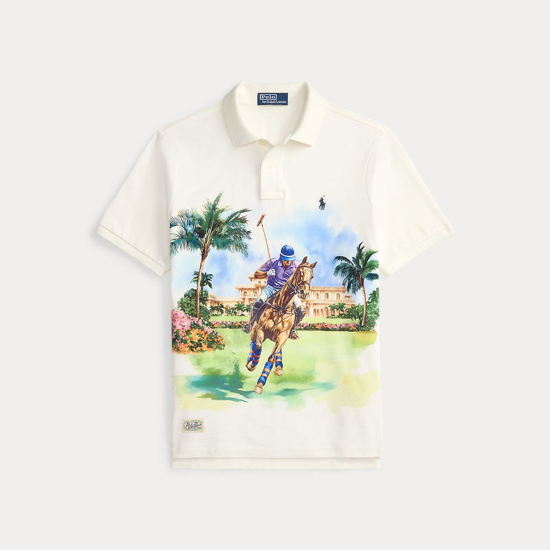 An American style standard since 1972, the Polo shirt has been imitated but never matched. Over the decades, Ralph Lauren Lauren has reimagined his signature style in a wide array of colours and fits, yet all retain the quality and attention to detail of the iconic original. Reflecting the sophisticated spirit of the sport that inspired Polo Ralph Lauren Lauren, this version features a player navigating through a paradise of palm trees.