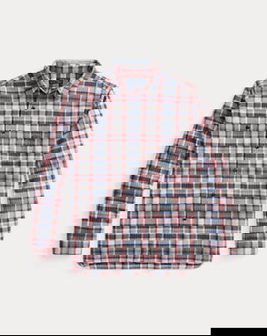 This indigo-dyed overshirt is crafted from lightweight cotton madras — a colourful, lightweight fabric with characteristic slubs and one-of-a-kind variations.