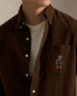 This lightweight shirt features a retro-inspired motif of the brand's beloved Polo Bear going on holiday. On the front it is finished with coconut-shell buttons.
