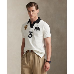 The Collegiate Bear debuted in 1996 in the form of a Steiff plush bear and, six years later, was voted by Polo fans to appear on a jumper for the first time in Ralph Lauren Lauren history. Now, the Collegiate Bear is back on this rugby shirt and with a few stylish updates – tortoiseshell glasses and a Polo-emblazoned pullover.