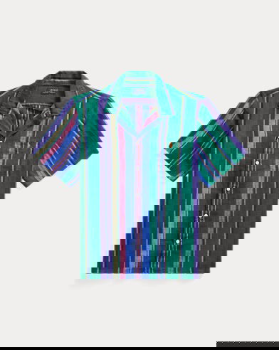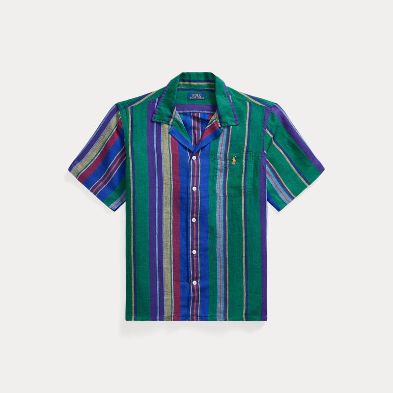 Classic Fit Striped Linen Camp Shirt