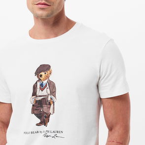 The Collegiate Bear debuted in 1996 in the form of a Steiff plush bear and, six years later, was voted by Polo fans to appear on a jumper for the first time in Ralph Lauren Lauren history. Now, the Collegiate Bear is back on this heavyweight T-shirt and with a few stylish updates – tortoiseshell glasses and a Polo-emblazoned pullover.