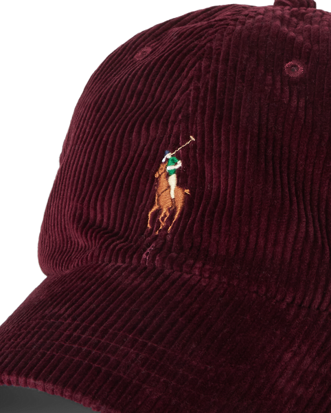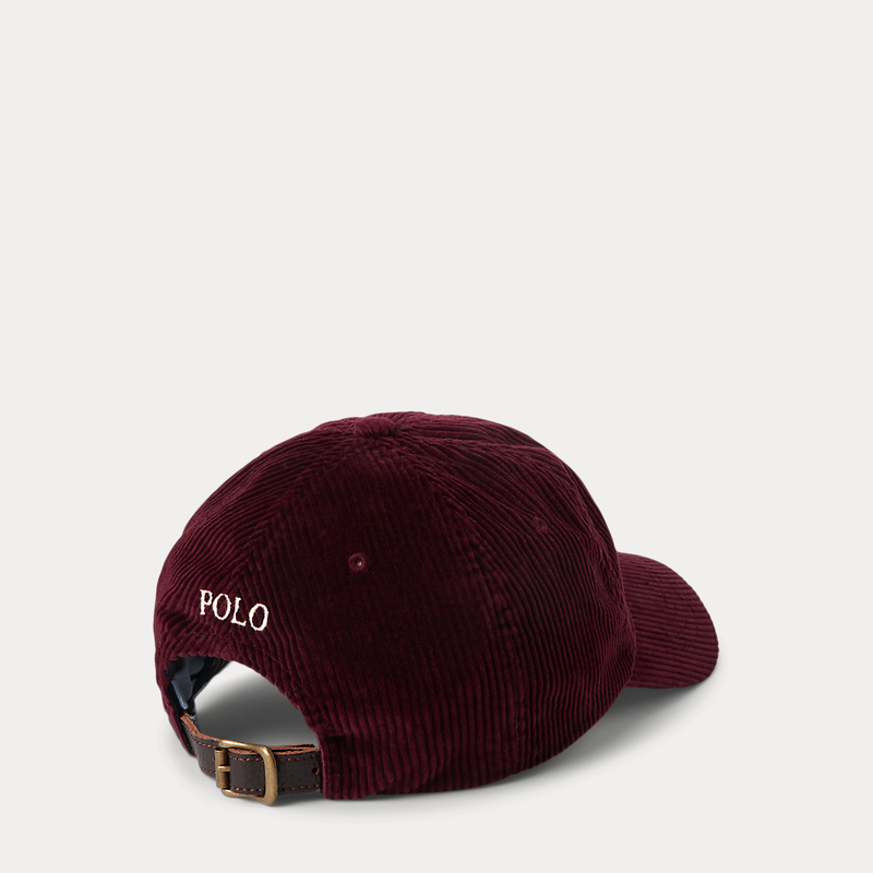 Ralph Lauren Lauren's signature multicoloured embroidered Pony accents the front of this corduroy ball cap, which is finished with a buckled leather strap on the back.
