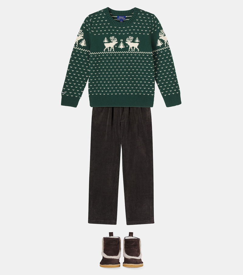 This sweater from Polo Ralph Lauren Kids is the ideal style for mountain trips or cozy afternoons by the fireplace. Crafted from a soft cotton and wool blend, the design features a reindeer pattern and a geometric motif.