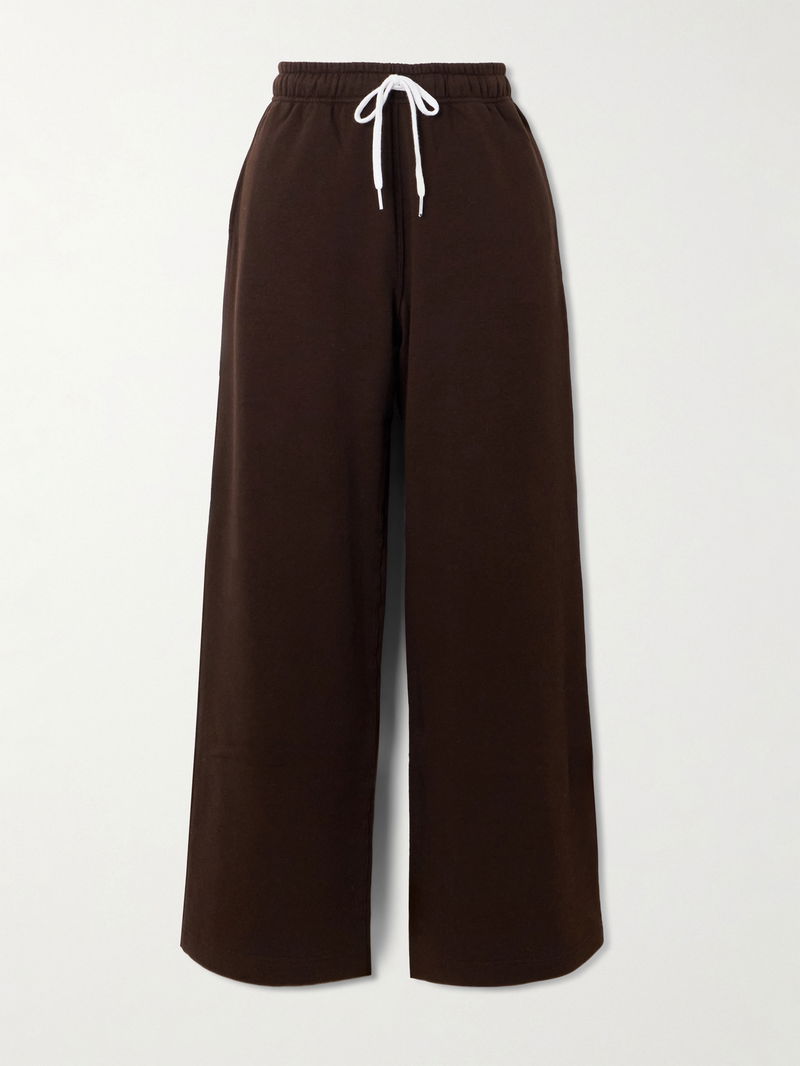 Cotton-blend Jersey Wide-leg Track Pants