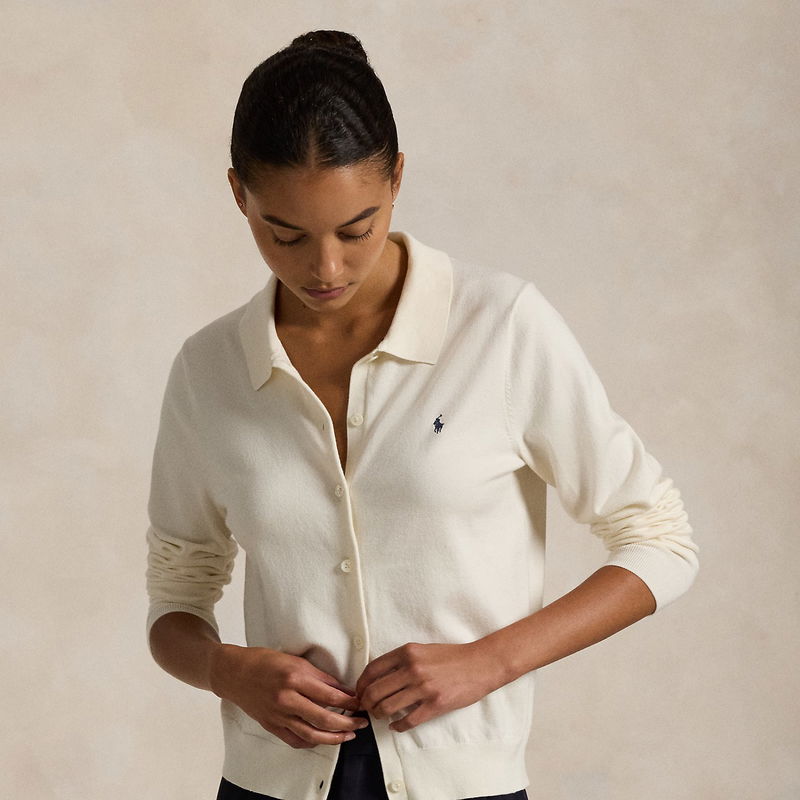 Cotton-Blend Polo Cardigan