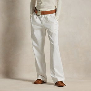 A borrowed-from-the-boys classic, these cotton chino trousers are tailored for a straight-leg silhouette with back waist darts and a clean hem.