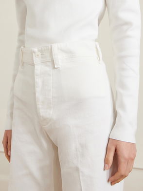 Modeled after traditional chinos, Polo Ralph Lauren's cotton-blend twill pants are at once casual and polished. They're cut to sit high on the waist and have wide, cropped legs. Wear yours with sweaters and T-shirts alike.