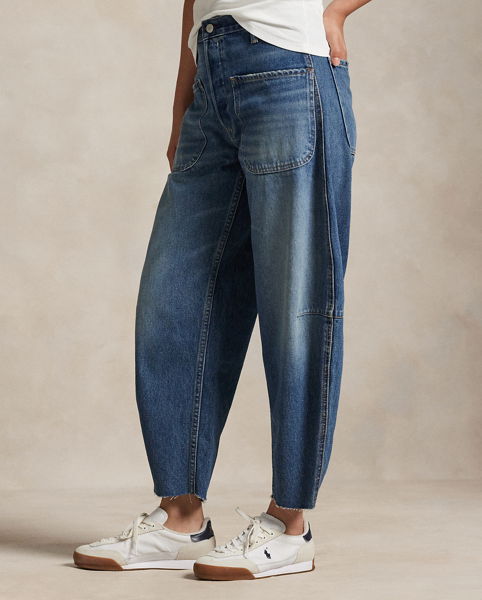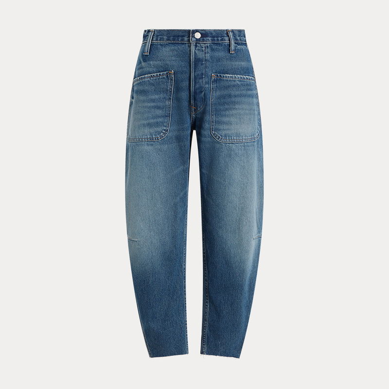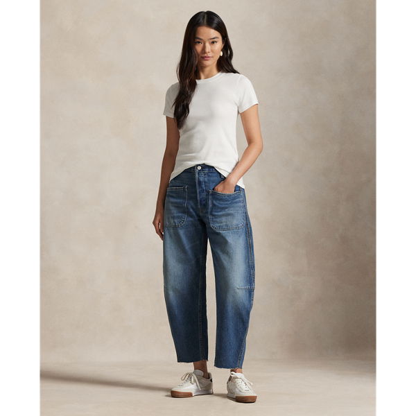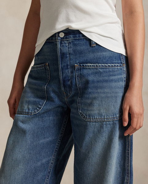 Crafted from medium-weight right-hand cotton twill, these high-waisted jeans feature a curved leg silhouette, which is relaxed at the hip. Signature details include a back patch and metal buttons with our custom-developed "Polo Ralph Lauren Lauren" logo.