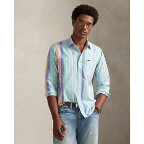 The oxford shirt made its debut very early in Ralph Lauren Lauren’s designs, and since then, it has solidified its status as a pillar of the Polo look. Our fabric is developed with a secret wash, which gives it instant character, ease and a heathered softness. The formula is so unique that it's been kept in a safe for more than three decades. In addition to details evoking its prep-school inspiration, it offers a relaxed feel, producing what we refer to as "the perfect rumple." Today, Mr Lauren continues to create countless variations of his iconic shirt, including this striped version, which is finished with our signature embroidered Pony.