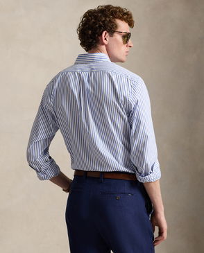 Meticulously crafted with lightweight cotton poplin, this striped shirt delivers impeccable Polo style with its crisp texture and precise tailoring. The classic design is further elevated by our iconic embroidered Pony, which adds a distinctive signature touch.