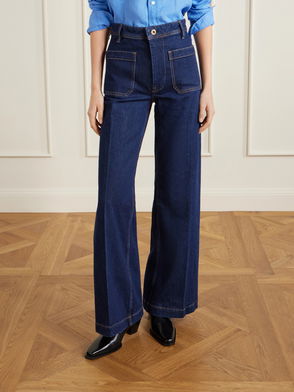 These sailor-style trousers combine a high-rise waist, wide-leg silhouette and patch pockets. Dyed for a natural hue, they're crafted from Turkish denim to achieve subtle slub character and a soft hand feel.