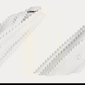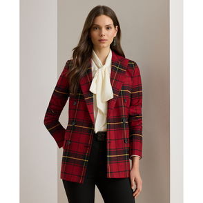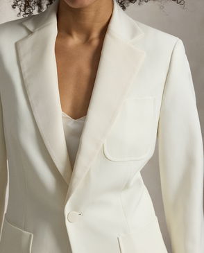 Polo Ralph Lauren's equally sophisticated and elegant blazer borrows from tuxedo styles with its mulberry silk-satin peak lapels and matching buttons. It's made from wool and has a double-breasted front and padded shoulders, which add structure to the slim fit.