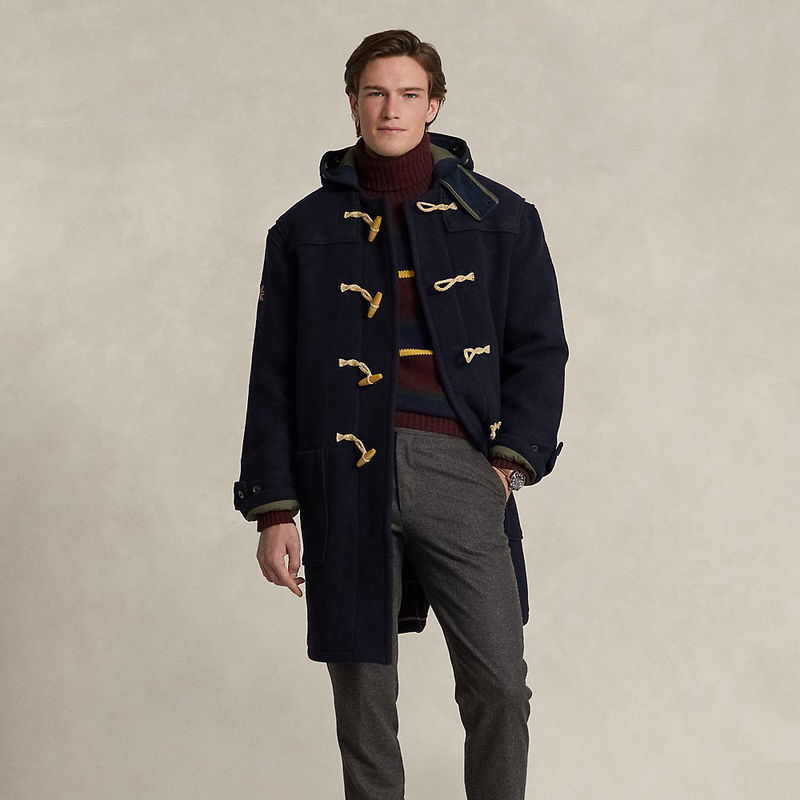 This version of the traditional toggle coat is crafted with a double-faced wool cloth that was specially developed for Polo Ralph Lauren Lauren by Britain's Abraham Moon & Sons. On the right sleeve, it is finished with a Union Jack patch.