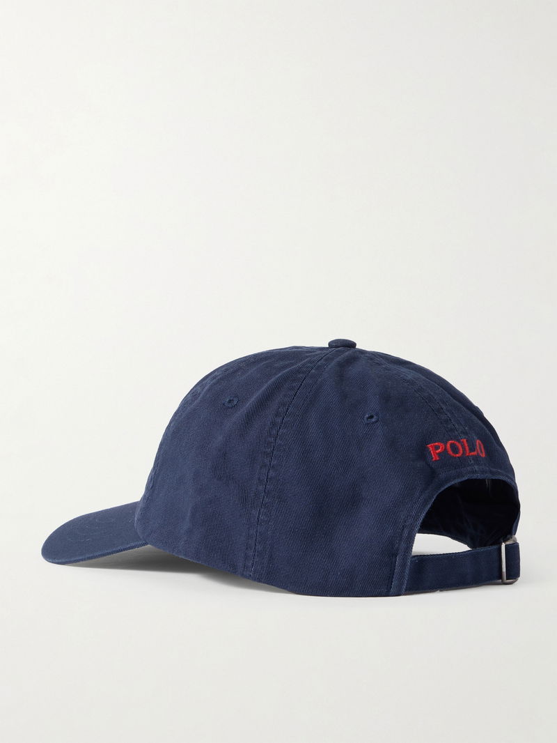 Polo Ralph Lauren's cap is made from cotton-twill in a classic blue and embroidered with the label's signature pony emblem at the front and the moniker over the adjustable tab at the back. It'll make any outfit you style it with look effortlessly cool.