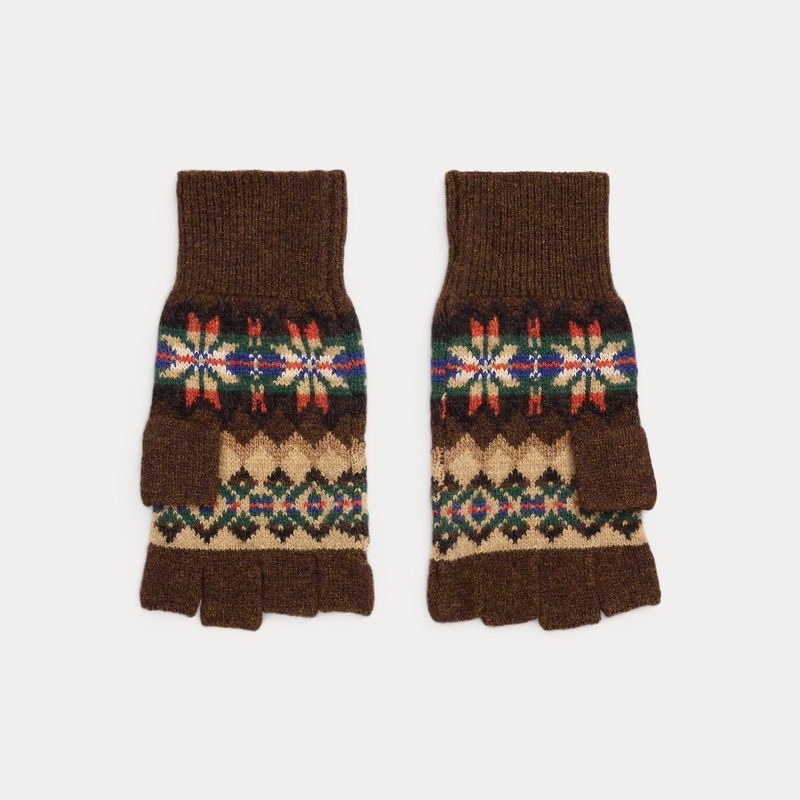 A fingerless design updates these wool-blend gloves, which are knit with marled yarns and a classic Fair Isle pattern.