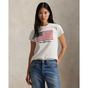 Show your love for the red, white and blue with this T-shirt featuring a historical American flag appliqué and made from cotton jersey that's been washed for a perfectly broken-in look. It's a heritage-inspired staple that's unmistakably Polo, whether you wear it with jeans or a leather skirt.