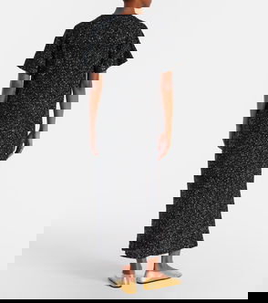 This dress combines a rib-knit Henley bodice with a flared skirt woven with cotton and constructed with side on-seam pockets.
