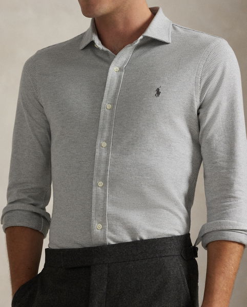 Houndstooth Jersey Spread-Collar Shirt