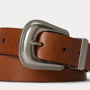 This belt's woven leather strap incorporates braided cord within the weave to create dimensional colour and texture.