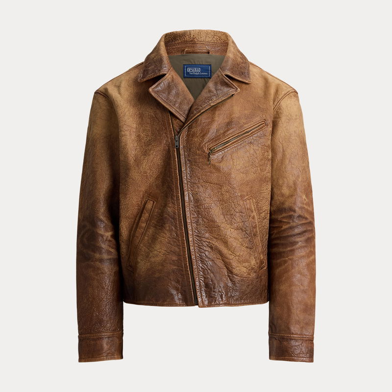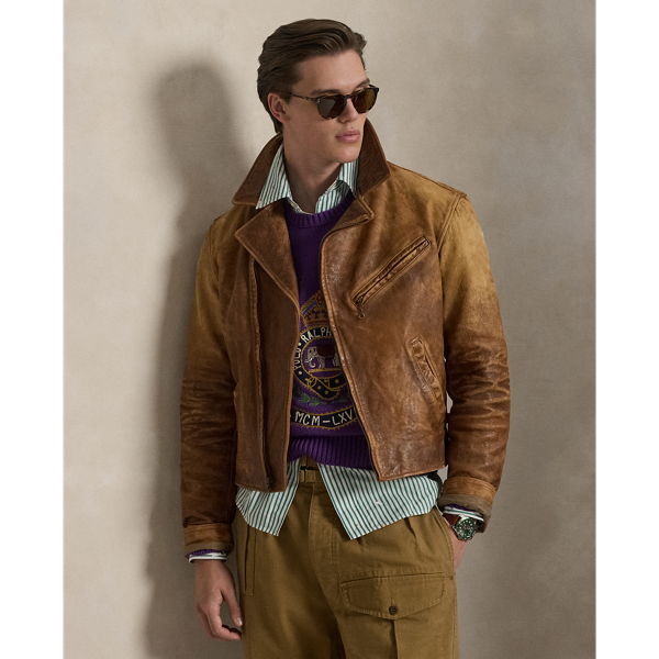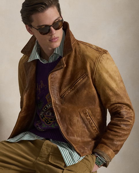Inspired by a jacket from Mr. Lauren’s personal collection, this layer is crafted with supple leather that is specially developed to achieve an authentic vintage appearance.