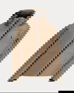 Crafted from water-repellent fabric, this jacket features functional details, such as a mesh-lined vented back and metal grommets on the underarms for breathability.