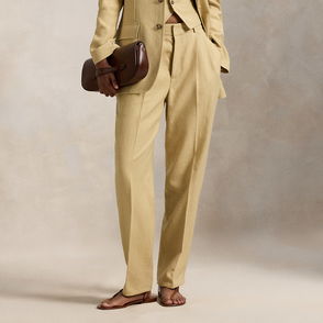 Woven with linen, these wide-leg trousers feature tapered cuffs with concealed zip vents and a wrap detail, which ties at the front waist.