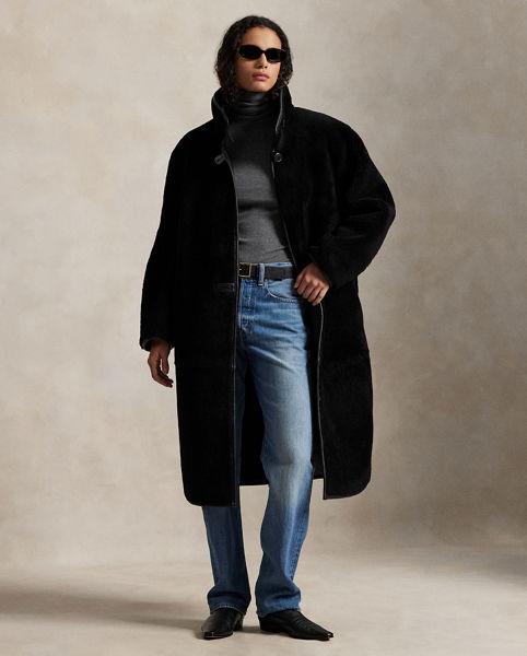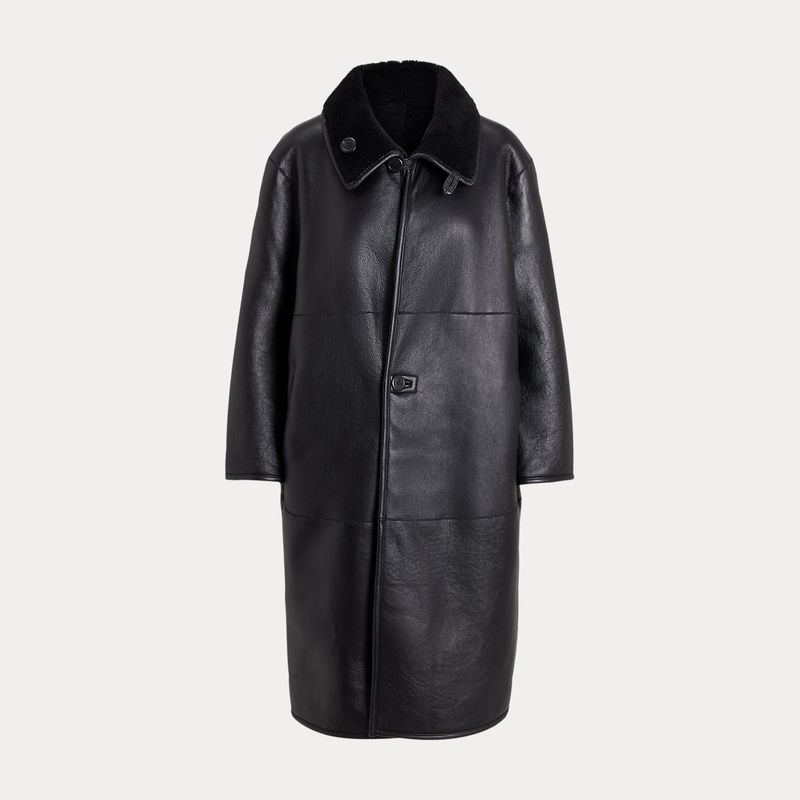Cut for an oversize, cocoon-inspired shape, this wrap coat is finely crafted from plush Australian sheep shearling and designed with a reversible silhouette, which delivers two looks in one.