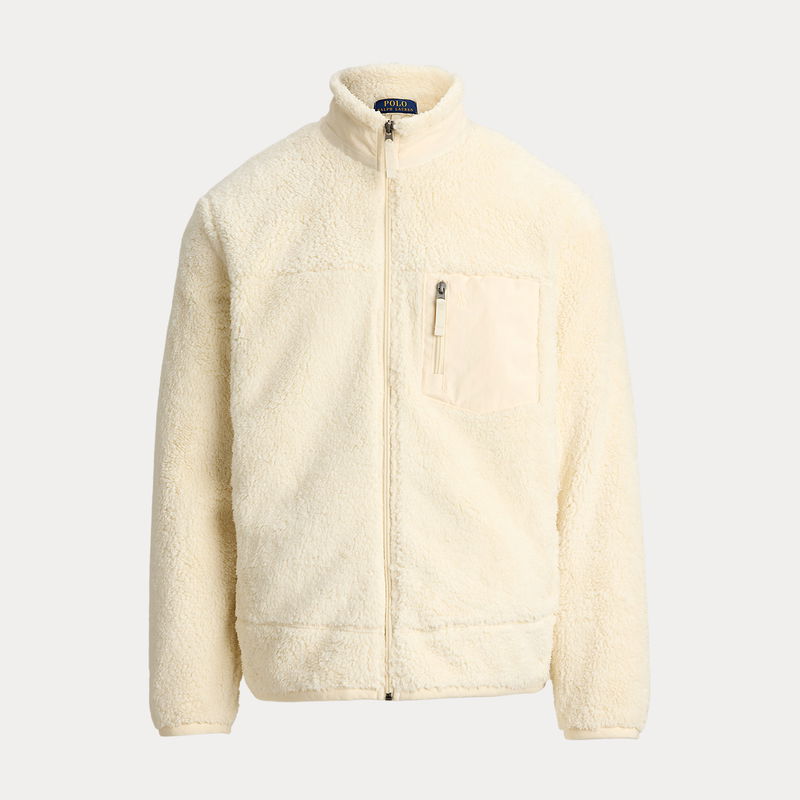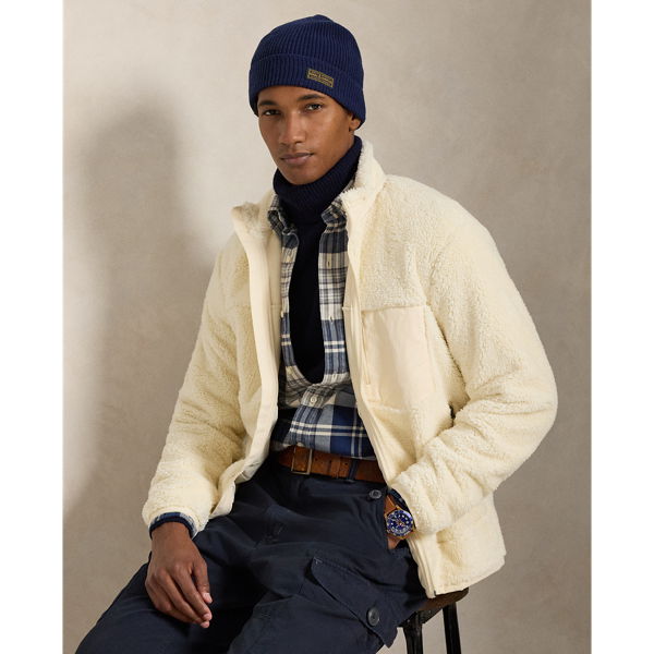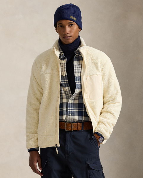 This jacket is crafted from high-pile fleece, which is bonded to a textured mesh fabric in the interior. Durable woven piecing adds a rugged, outdoor wear-inspired look.