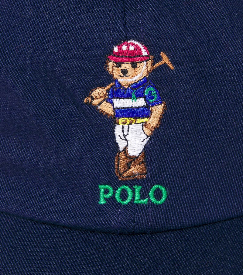 Polo Bear was introduced as Polo Ralph Lauren Kids' fashionable mascot after employees gave Ralph Lauren a teddy bear that was dressed like him. The lovely motif adorns the front of this baseball cap, crafted from navy blue cotton.