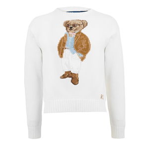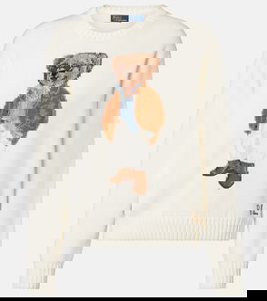 This cotton crewneck jumper showcases an intarsia-knit and embroidered rendering of the Polo Bear donning a Ralph Lauren Lauren look, complete with a signature Pony ball cap.