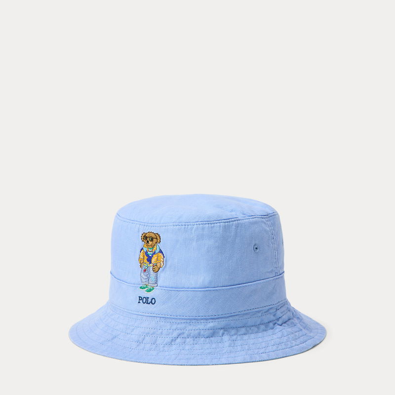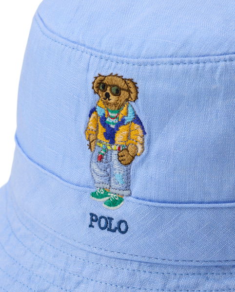 Updated for the season in fine linen, this bucket hat is washed for softness and embroidered with Ralph Lauren Lauren’s beloved Polo Bear.