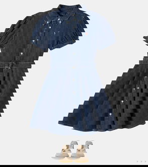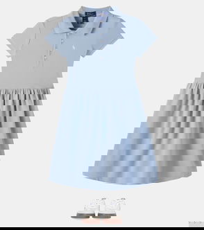 Polo Bear was introduced as Polo Ralph Lauren Kids' fashionable mascot after employees gave Ralph Lauren a teddy bear that was dressed like him. It's featured on the cotton-blend fleece bodice of this dress, complete with a striped cotton skirt.
