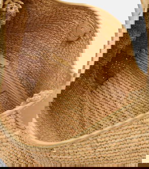 All the bags in Polo Ralph Lauren's 'Polo ID' collection have equestrian-inspired saddle shapes and cutout 'ID' tags. This one is made from leather-trimmed raffia and has an adjustable top handle. There's enough room for your wallet, tablet and keys.