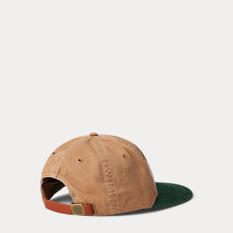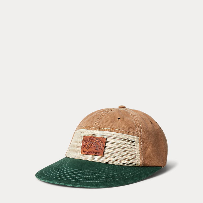 The brand Polo Ralph Lauren’s iconic Polo Sportsman leather patch accents this twill long-bill cap, which features a two-tone design and a front mesh panel.