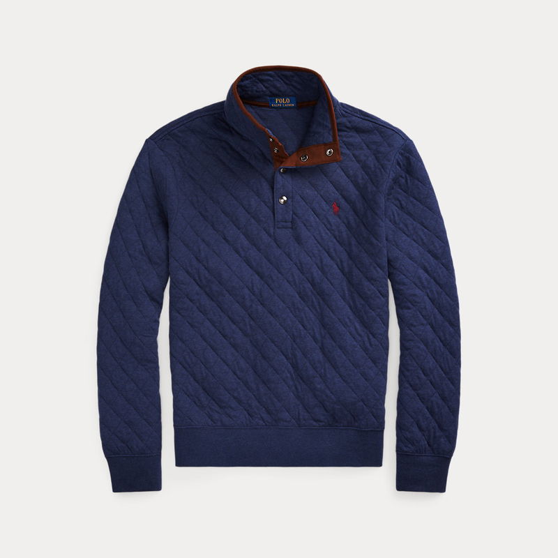 This diamond-quilted cotton-blend pullover is crafted with double-knit jersey and finished with faux-suede binding on the collar.