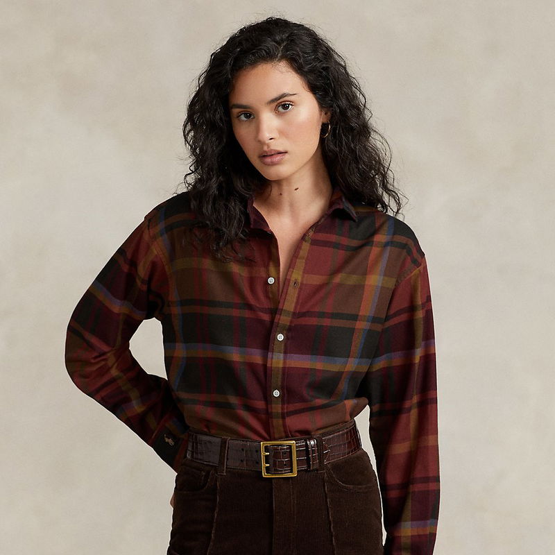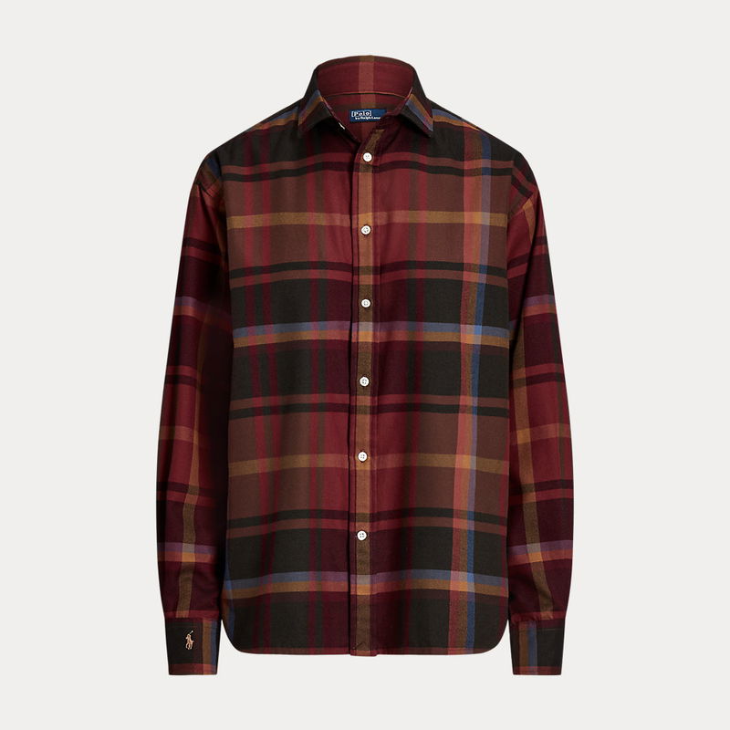 Cut for a relaxed silhouette, this shirt is crafted with soft, brushed cotton twill in a multicoloured plaid motif. Polo Ralph Lauren’s signature embroidered Pony accents the right cuff.